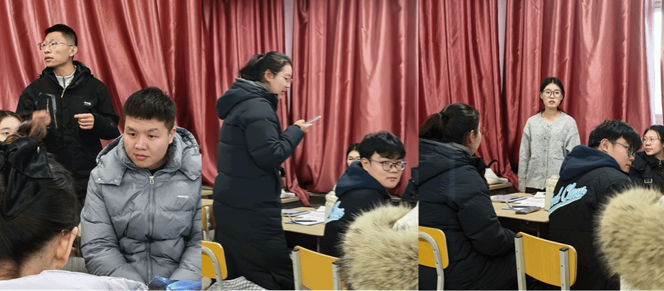 展示结束后,活动进入组间互评与教师提问环节。各小组秉持严谨的学术态度,针对其他小组的教学设计踊跃发问、分享见解,同时深入阐释自身设计的理念与依据,并结合真实教学场景,预判可能存在的问题,提出相应的应对策略。