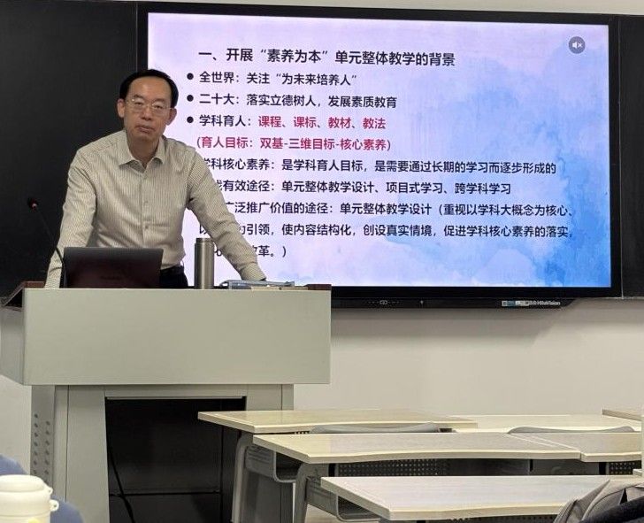 特邀人民教育出版社乔国才老师开展《聚焦核心素养落实立德树人——基于教材理解的教学转型》讲座,解读了2024年人教版义务教育化学教科书修订思路及变化,剖析核心素养如何融入初中化学课堂,为研究生打开“教材—素养—教学”的关联视角。