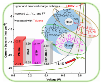 詹传郎教授团队一直致力于有机光伏材料与器件领域研究。近期,通过四元策略调整能级与改善形貌的协同作用,实现了绿色溶剂处理的有机太阳能电池效率从13.1%至17%的提升,为提高绿色溶剂加工的聚合物太阳电池效率提供了一种简单且有效的方法。相关研究成果“Green-Solvent-Processed 17% Efficient Polymer Solar Cell Achieved Synergistically by Aligning Energy Levels and Improving Morphology with the Quaternary Strategy”在太阳能电池材料与器件领域TOP期刊《Solar RRL》上发表。