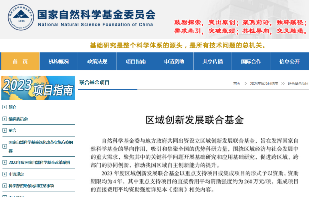 区域创新发展联合基金由国家自然科学基金委与地方政府共同投入经费设立,旨在发挥国家自然科学基金的导向作用,引导与整合社会资源投入基础研究,促进有关部门、企业、地区与高等学校、科学研究机构的深度合作,培养科学与技术人才,推动我国相关领域、行业、区域科研自主创新能力的提升。