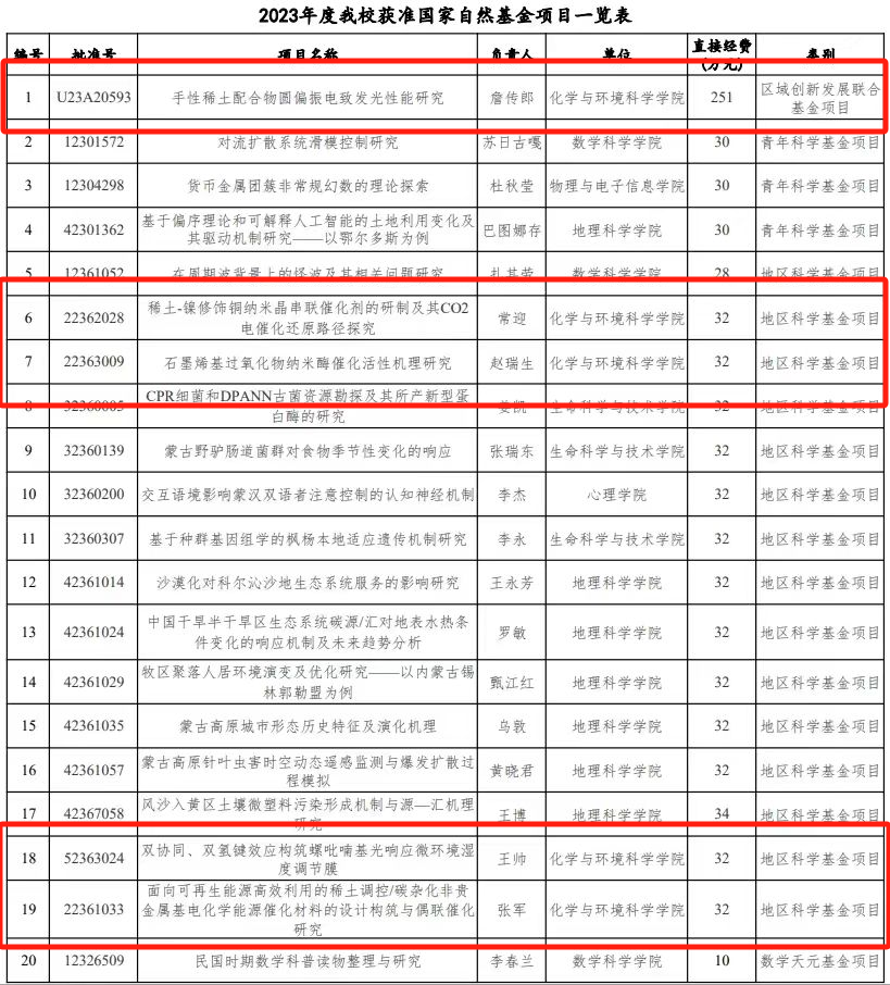 2023年11月,国家自然科学基金委员会公布了2023年度区域创新发展联合基金项目立项名单,我院党委副书记、主持工作副院长、先进材料化学与器件内蒙古自治区高等学校重点实验室(AMCDlab)主任詹传郎教授主持的项目“手性稀土配合物圆偏振电致发光性能研究(项目编号:U23A20593)”获批立项,获得直接资助经费251万元。据悉,这是太阳成集团tyc9728首次获批国家自然科学基金区域创新发展联合基金重点项目。