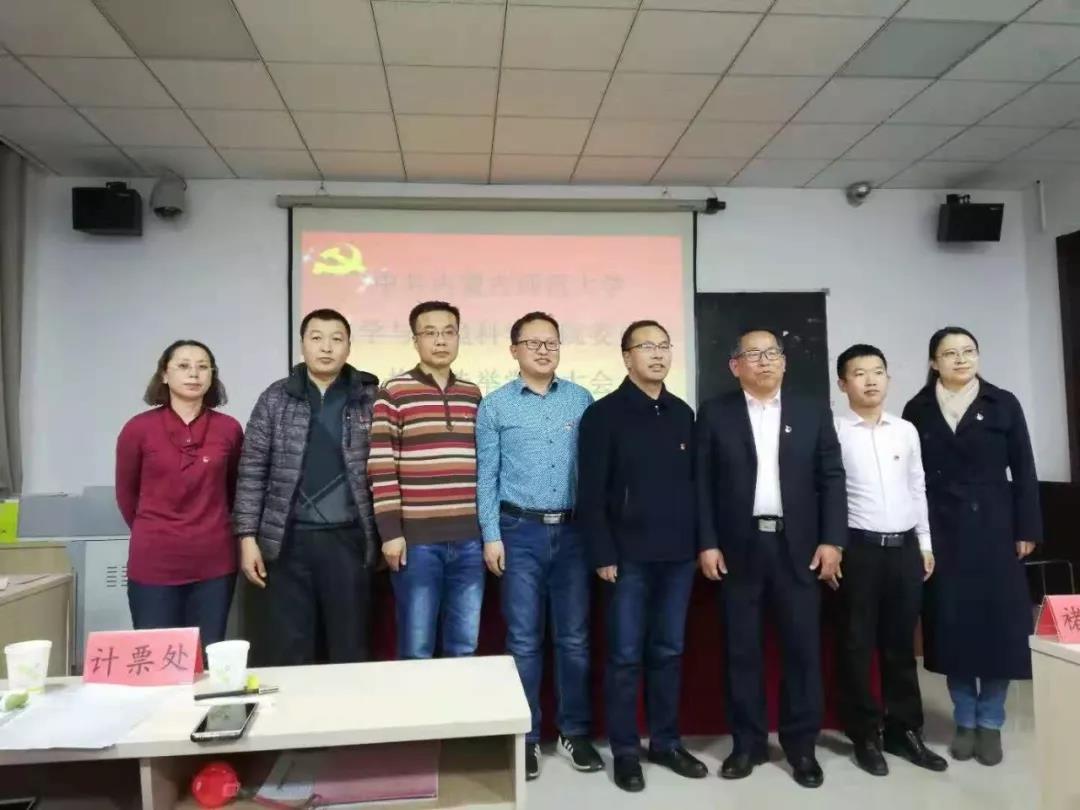 2018年11月29日下午,我院在文史楼会议室举行中共9728太阳集团委员会换届选举大会,太阳成集团tyc9728组织部褚亚申部长参加本次会议,学院教职工党员、学生正式党员51人参加选举,大会由胡日查同志主持。
