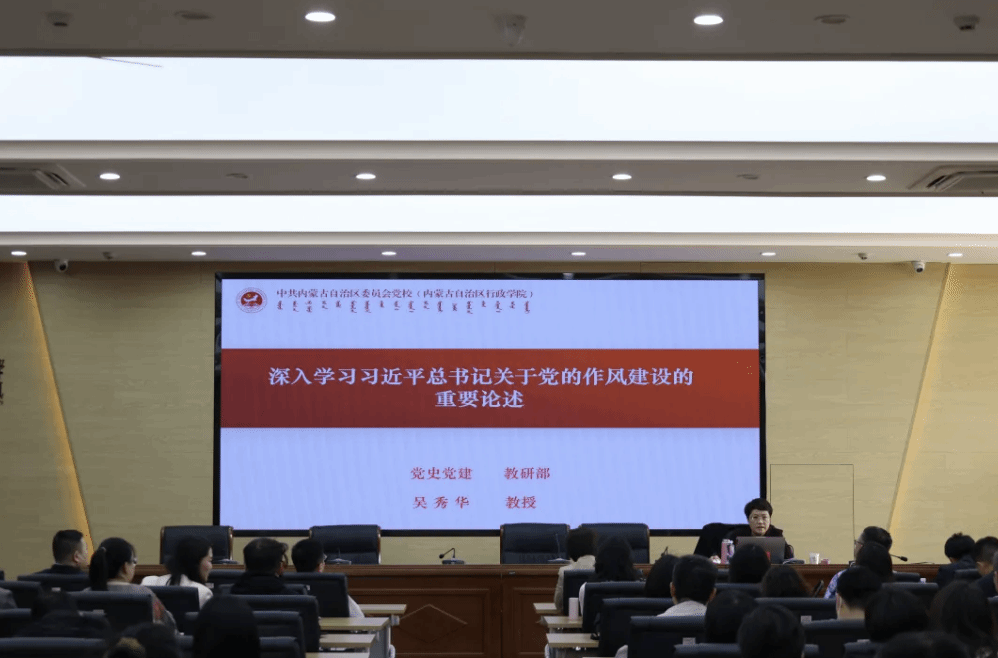 开展深入贯彻中央八项规定精神学习教育,是巩固深化主题教育和党纪学习教育成果、纵深推进全面从严治党的重要举措。为深入贯彻落实党中央、自治区党委、学校党委深入贯彻中央八项规定精神学习教育精神和要求,高质量开展学习教育活动,4月10日,我院联合数学科学学院、物理与电子信息学院、生命科学与技术学院和未来科学与技术学院在赛罕校区行政楼三楼报告厅举办深入贯彻中央八项规定精神学习教育读书班专题讲座。讲座邀请内蒙古党校党史党建教研部吴秀华教授作题为“深入学习习近平总书记关于党的作风建设的重要论述”专题讲座。