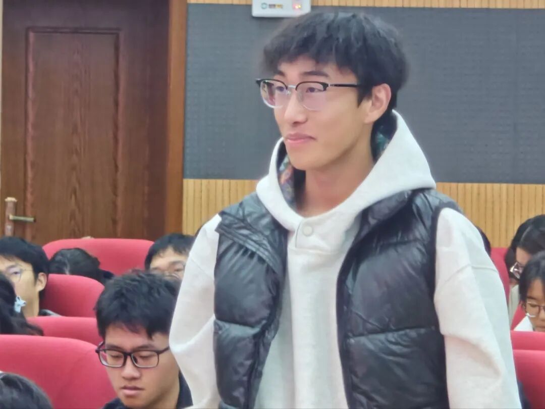 在交流互动环节,师生们围绕“双碳目标下青年人的责任担当”“考研准备与学业规划”等话题展开热烈讨论。老师们结合自身经验,对同学们的问题给予了细致解答,现场互动氛围融洽,思维碰撞不断。