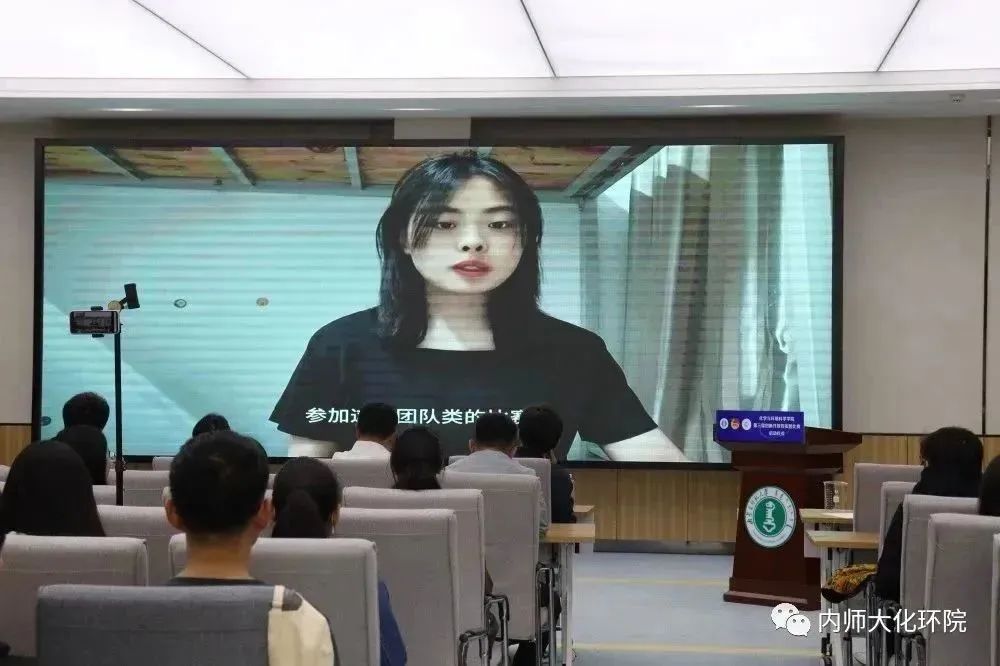 首先由获得第七届中国国际“互联网+”大学生创新创业大赛内蒙古赛区高教主赛道金奖代表2020级研究生李春浩、第八届中国国际“互联网+”大学生创新创业大赛内蒙古赛区产业赛道金奖代表2020级本科生郭术奥、获得“田家炳杯”第八届全国师范院校师范教学技能竞赛二等奖的李卓孺、“第二届创新开放性实验总决赛”获奖代表王合心、魏霞、获得自治区级大学生创新项目的郭颖、智敏同学,依次为大家展示了实践教育成果,分享了成功经验。