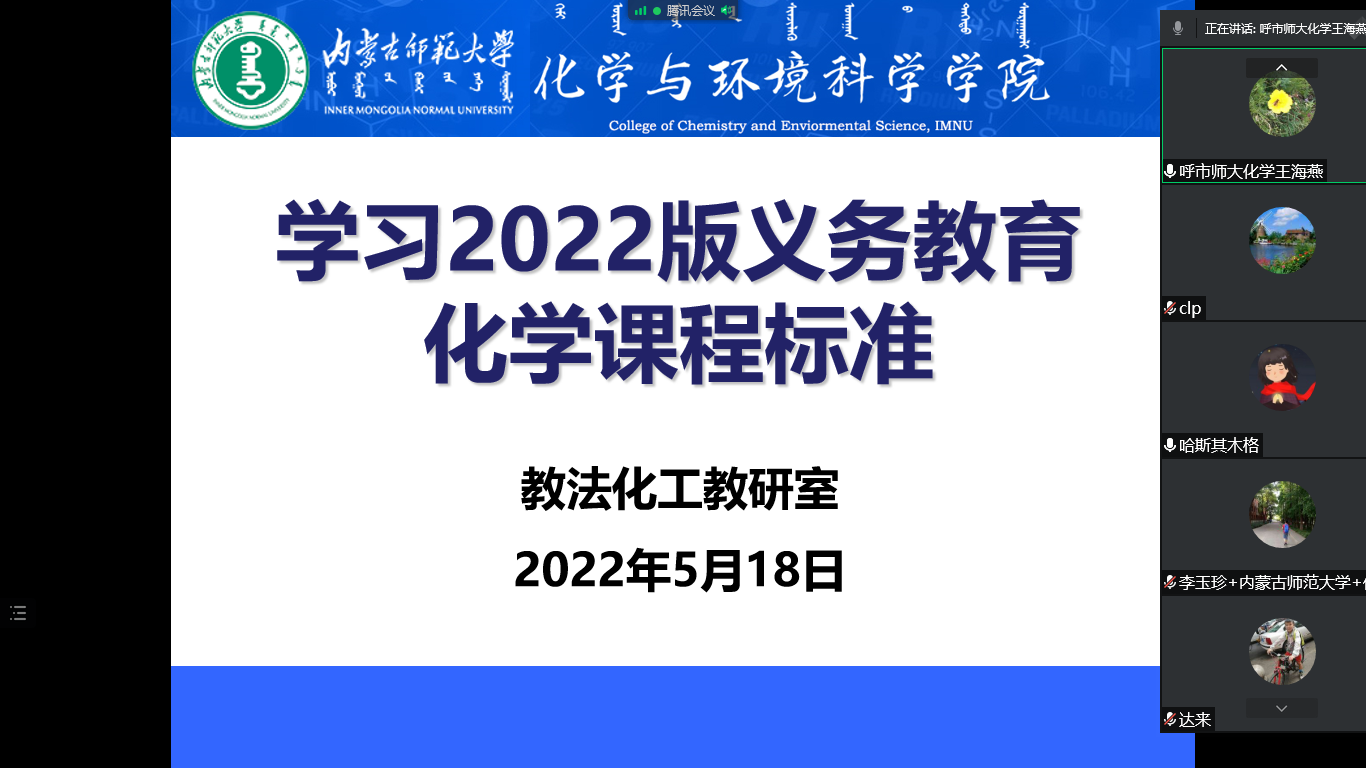2022年5月18日晚上9点,教法化工教研室集体在线上学习了2022版义务教育化学课程标准。本次会议由王海燕老师主持,老师们从课程性质、课程理念、课程目标、课程内容、学业质量和课程实施等六个方面进行深入学习。并在最后重点讨论了课程方案和课程标准的变化。
