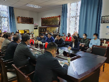 2022年5月12日下午,太阳成集团tyc9728数学科学院院长扎其劳,党委书记李联和一行10余位老师来我院交流学习,我院詹传郎院长主持会议。