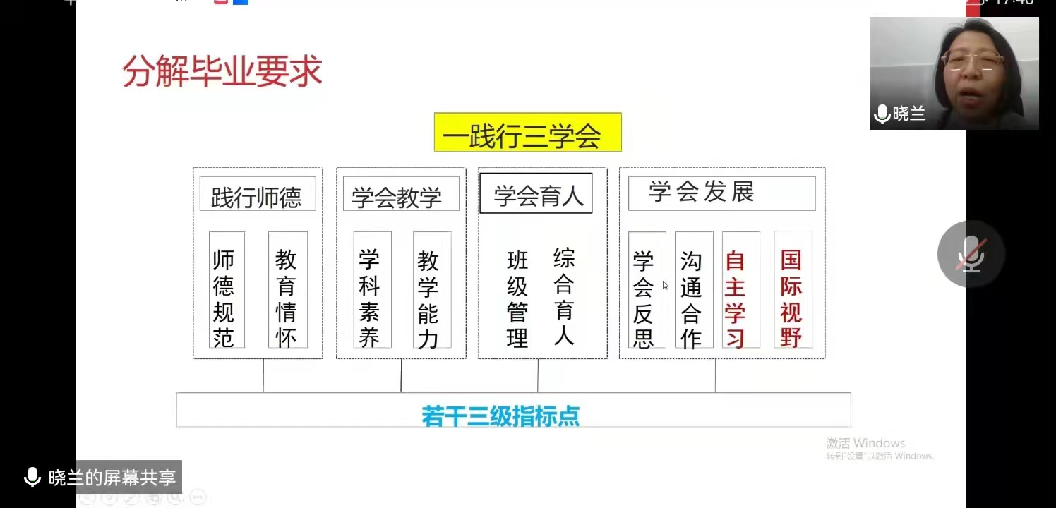 会上,郝向英院长指出师范类专业认证整改工作应当基于“学生中心、产出导向、持续改进”的师范认证理念,厘清培养目标、毕业要求及课程体系间的支撑逻辑关系。在面向产出导向的评价机制的建设和实践中,需要重点关注培养目标与培养效果的达成度、专业定位与社会需求的适应度、教师及教学资源的支撑度、质量保障体系运行的有效度、学生和用人单位的满意度。郝院长还详细介绍了师范类专业建设范式,分享了她们的专业建设的思路和举措,准备工作等。她强调,师范专业要以专业认证为契机,全面推进专业内涵建设,提升专业办学水平。参会人员围绕专业建设与师范认证整改工作展开了热烈的讨论和交流,并提出了建设性的意见和建议。