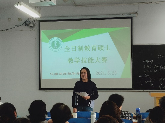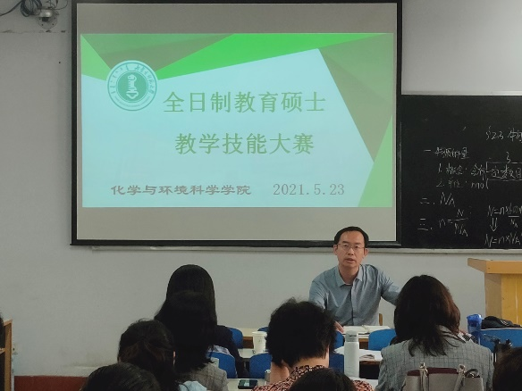 2021年5月22日举办了2020级全日制教育硕士教学技能大赛初赛,共有38位研究生参加。比赛由15分钟的模拟授课和5分钟的即兴演讲构成,分两组进行。第一组在化学楼315进行,由刘子忠书记担任组长,莎仁、陈丽萍、赵斯琴、白音孟和4位研究生导师担任评委;第二组在化学楼102进行,由乌云教授担任组长,吴哈申、王晓丽、爱军、李玉珍4位研究生导师担任评委。比赛过程严格按照校级赛的规格,参赛选手在比赛前1小时抽取模拟授课题目,模拟授课结束后现场抽取即兴演讲题目。评委现场打分,最后成绩为5 位评委所给成绩去掉最高分和最低分之后的平均分。通过一天的激烈角逐,最终选取每组前3名晋级决赛。初赛结束后,每位评委都进行了精彩点评,为各位参赛选手指明了问题,提出了建议,并寄予了希望。