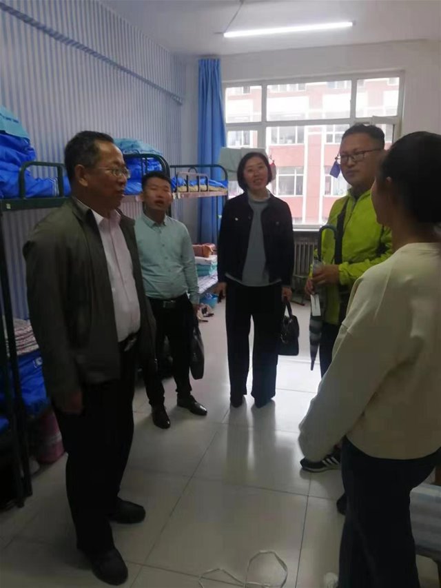2019年9月11日下午,9728太阳集团2019级新生家长见面会结束后,我院党委书记刘子忠老师、院长贾美林老师、副书记兼副院长胡日查老师,副院长包永胜老师、团总支王淑娟老师一行走访了2019级本科生新生宿舍。