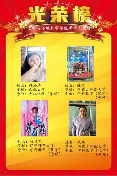 星光不负赶路人,天道酬勤佳音来。2019年,在学院党政领导和全院师生的共同努力下,坚定而睿智的化环学子不负众望,考研成绩再创辉煌,继续用青春书写着新时代的荣光。