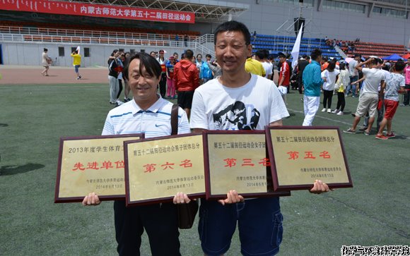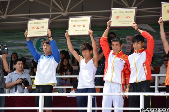 我院获得男子团体总分第六名(王茂代表领奖左二)