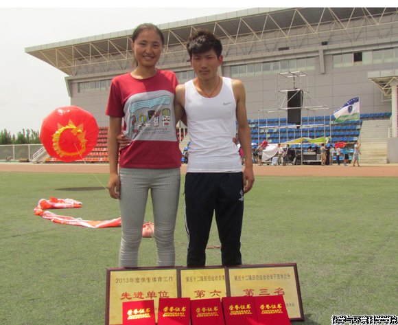 本次校运动会我院以团体总分100分的成绩,在众多学院中获取第五名的优异成绩。男子团体总分41分荣获第六名;女子团体总分59分荣获第三名。此外,我院还被评为学生体育工作先进单位。我院团总支宝贵老师荣获学生体育先进个人称号,徐月山荣获“优秀运动员”称号。本次田径运动会我院体育英雄王茂同学秉承去年赛场上的意气风发,一举拿下男子400、800米冠军,这是他的荣耀,更是我们化环学子的自豪。当然我们的巾帼不让须眉,郭瑞鑫同学在女子400米栏上展露她锐利的头角,最终斩获第一名的好成绩。