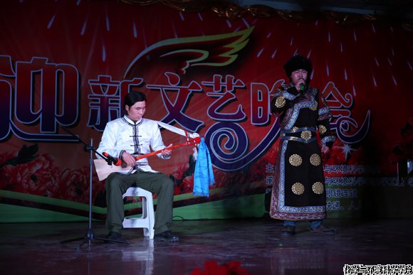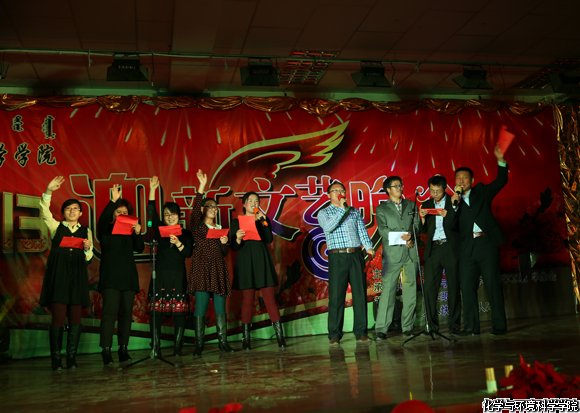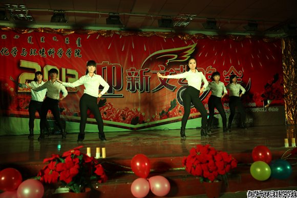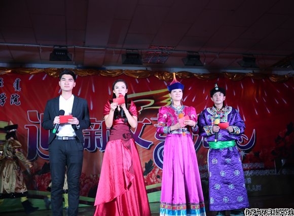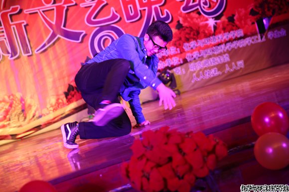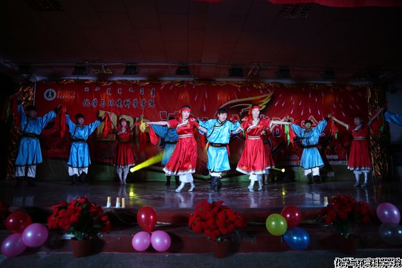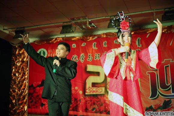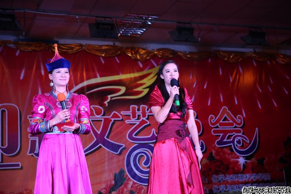 文艺晚会演出2个半小时。热情豪放的蒙古族舞蹈拉开了序幕,点燃了现场观众的激情。火爆的街舞、流行的现代舞与双节棍表演引人入胜,一个个高难度动作引来观众阵阵掌声。小品《非诚勿扰》《环保模特队》 《宿舍风波》更是精彩纷呈。表演者夸张的动作,丰富的面部表情及恰到好处的幽默艺术,令台下观众捧腹大笑。歌曲《新贵妃醉酒》毫不逊色,以其动听的歌声给大家留下深刻的印象。舞蹈《WAKA WAKA》、《奔腾》使大家领略了蒙古族热情淳朴的风情。教师合唱 《相亲相爱一家人》,成为文艺晚会的亮点,台下经久不息的掌声将晚会再次推向高潮。筷子舞蹈《化环草原情》,热情洋溢的舞姿,欢快激荡的筷子声,让我们再次回到大草原那宽广的情怀。最后我院学生会副主席林玉涛领衔的一首《飞得更高》歌曲联唱,表达了化环院全体学子的欢快心声。