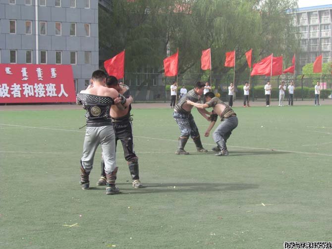我院院长长山教授主持开幕式,学院党总支书记莎仁教授致开幕辞。开幕式上裁判员代表和运动员代表分别宣誓,2012级新生代表队表演了广播操,2012级化学蒙班呼和牧仁等同学表演了蒙古族博克,2010级和2011级同学组成运动队表演了精彩的健美操。其中蒙古族博克最为引人注目,同学们对蒙古族博克传统有了更深了解,表演中掌声不断,深受同学们的喜爱。随后100米的枪响拉开了整个比赛的序幕。在这一天中,运动员们在赛场上发扬顽强拼搏、坚忍不拔、团结进取、勇于竞争的精神,他们将理想放飞、将激情燃烧、将辛苦和汗水折射成最绚丽的光芒。