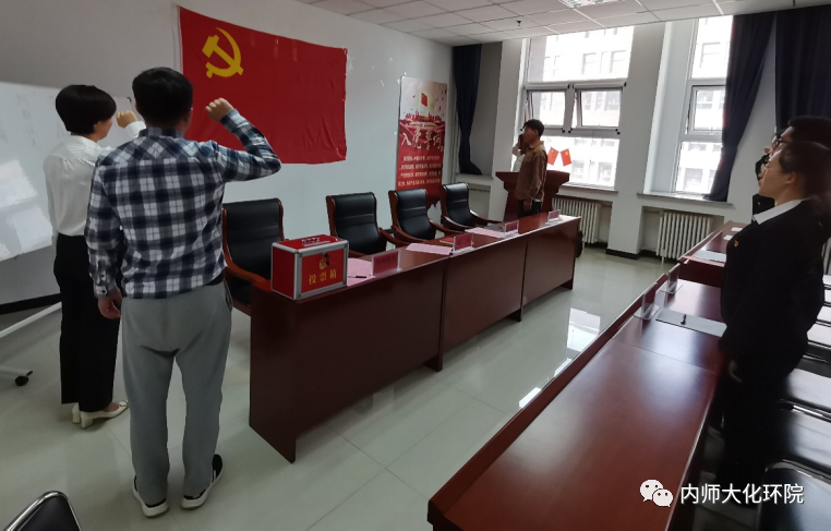 随后,支部书记白赛纳同志领读誓词宣誓,全体党员面向党旗进行宣誓。现场响起了阵阵激昂的宣誓声,每个同学都用发自内心的声音抒发对党忠诚的决心。