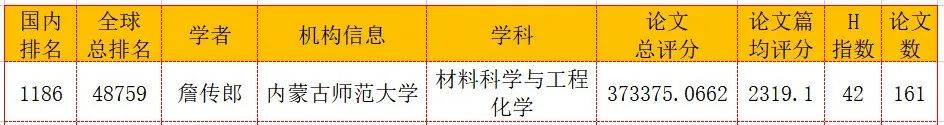 在材料科学领域,全球共有8585名学者入选全球前10万名学者名单,其中中国2666名学者入选。内蒙古自治区共有3位学者入选,我校9728太阳集团詹传郎教授进入榜单,在全国排名前45%,内蒙古排第一位。彰显了我校在该领域的科研实力。