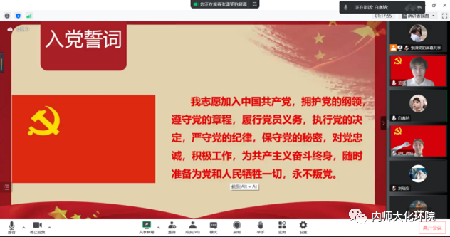 为进一步教育引导新发展党员铭记入党初心、强化党员意识、坚定理想信念,充分发挥先锋模范作用,12月9日,我院本科生党支部在线上隆重举行入党宣誓仪式。本科生党支部书记范磊、副书记阿斯汉夫、纪检委员孙光明、教师党员白赛纳及支部90名学生党员参加宣誓。