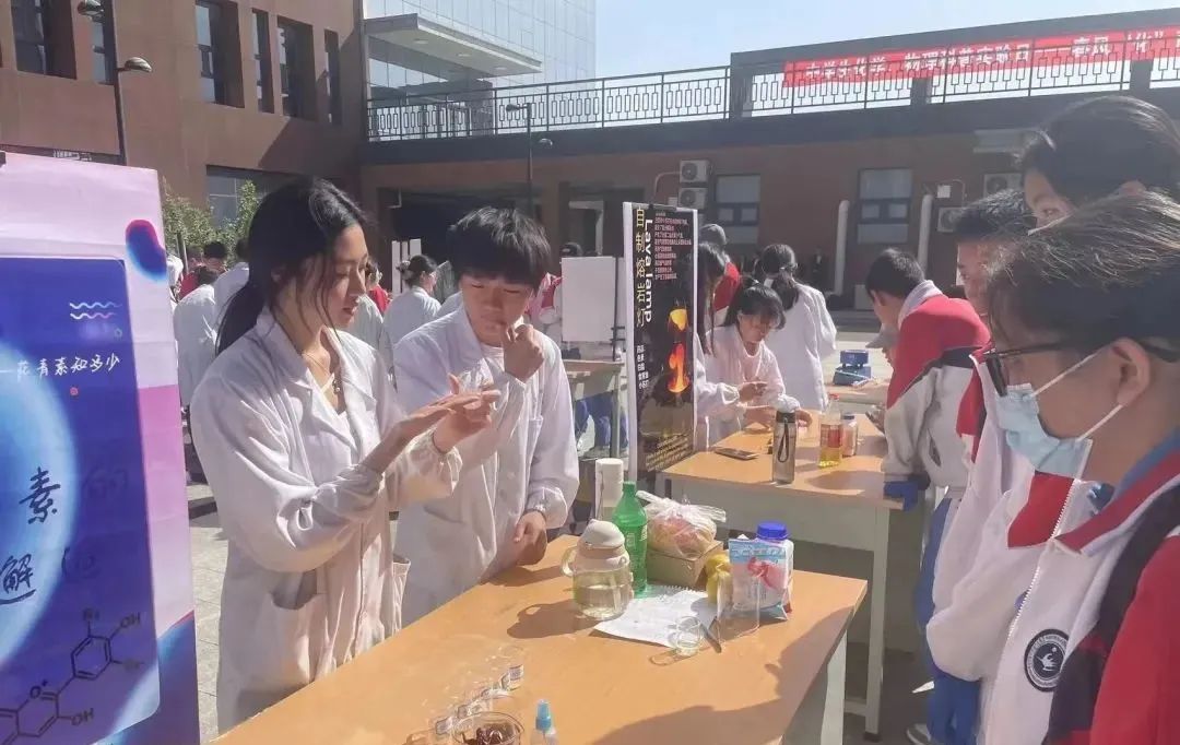 活动一:9728太阳集团2021级60名本科生组成20个科普实验小组,为中学生提供化学科普服务。通过观察、讲解、体验、探究等多种方式,带领大家走进科学,去体验丰富多彩的互动实验,感受科学的氛围。