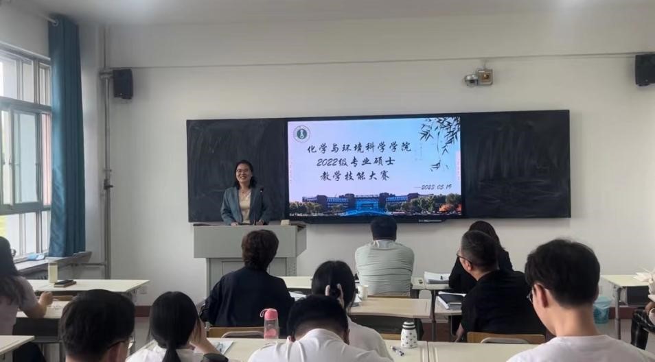 本次比赛的参赛选手共有30名,每名同学的教学展示时间为10分钟。在近6小时的展示环节中,选手们都展现出了作为一名教育硕士研究生应有的风采,虽然仅提供了黑板、粉笔、多媒体等基本教学设施,但选手们并没有受到客观条件的限制,有的选手现场进行了演示实验,还有选手用到了球棍模型、黑板贴、虚拟仿真实验等教学工具和手段。在各位参赛选手的精心准备下,教学展示环节精彩纷呈。