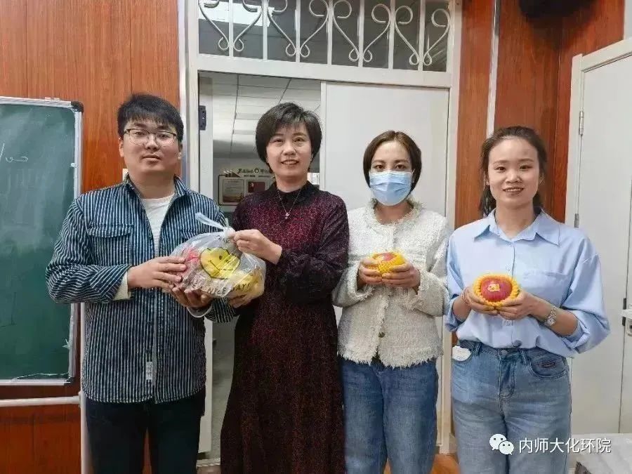 饼寄情思送温暖,师生同尝乐融融。一份份内师大化环院的礼物接踵而至,等待着同学们的签收。一箱箱香气四溢的月饼和新鲜的水果,也装着沉甸甸的化环院情意。在宿舍里,老师们与留校学生进行了亲切地交谈,询问大家的中秋假期安排,叮嘱同学们务必注意各类安全事项,将安全放在第一位。月满中秋,情暖校园,同学们虽然无法与亲人见面,但在温情满满的校园里,同样也感受到了来自学院和老师的深切关怀。