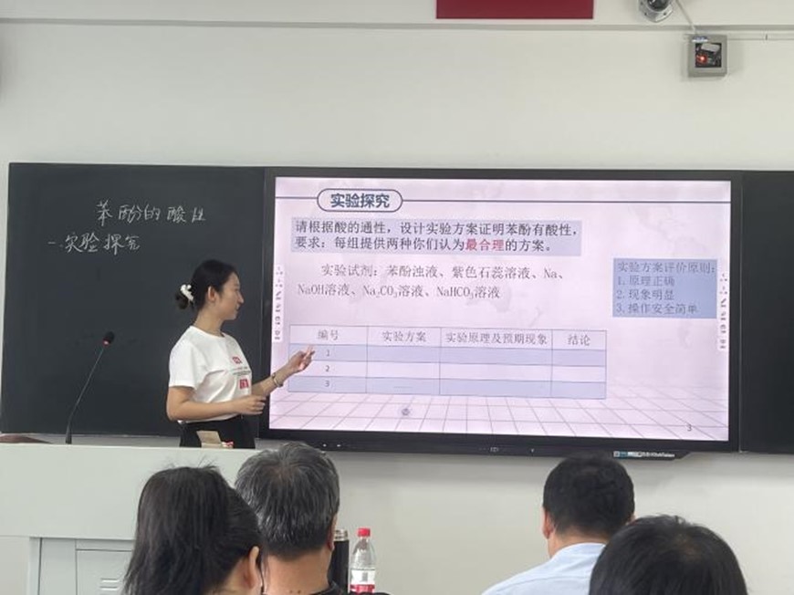杜欣丽老师对于选手的课堂教学设计和课堂教学展示水平给予了肯定,指出教育目标经历了由“双基”阶段到“三维”时代再到目前所经历的“核心素养”时代,让选手们明白应该将核心素养渗透到知识体系中,学生应该最终形成的是化学观念,而化学观念的形成应经历知识、思路、方法、思想一系列的发展,这一系列问题如何有效落实都需要我们深思熟虑。