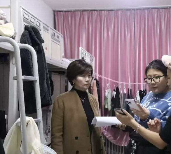 老师们围绕学生晚归、夜不归宿、非本宿舍成员借宿、请假制度的执行、心理危机学生的管理、宿舍防火及用电安全、雪天路滑注意交通安全等方面与学生进行交流。提醒大家要严格遵守宿舍管理规定,培养良好的作息习惯,为营造良好的学习生活氛围做出自己的努力。