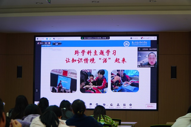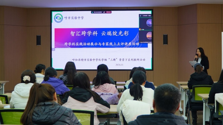 2024年11月19日,2024级学科教学(化学)专业的28位研究生赴呼和浩特市实验集团鼓楼校区参加第二次教研活动:义务教育九年级化学新教材提前一周集体备课。本次活动邀请到了江苏省正高级教师、化学特级教师魏明贵老师为我们开展题为《智慧跨学科云端绽光彩》的线上点评讲座,深入透彻地讲解了跨学科主题学习要让知识情境“活”起来,使学生能够在更加真实、多元的情境中理解和运用知识,从而提升综合素养和解决实际问题的能力。并横向对比分析了多个版本的化学教材,列举多个实验案例,展示了跨学科主题学习的魅力与可行性。