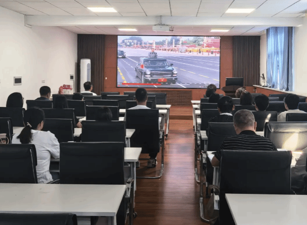 观看现场庄严肃穆,师生们通过屏幕中受阅部队步伐铿锵、装备先进的磅礴阵列,感受阅兵式展现的国防实力与民族豪情。从抗战老兵的深情回望到新时代军人的飒爽英姿,每一个方阵、每一件装备都深深烙印在学子心中,激发对历史的敬畏与对和平的珍视。大家纷纷表示,阅兵式不仅是一场视觉盛宴,更是一堂生动的思政课,让他们深刻体会到今日和平的来之不易,也激励着他们以更加昂扬的姿态投身学习与科研。
