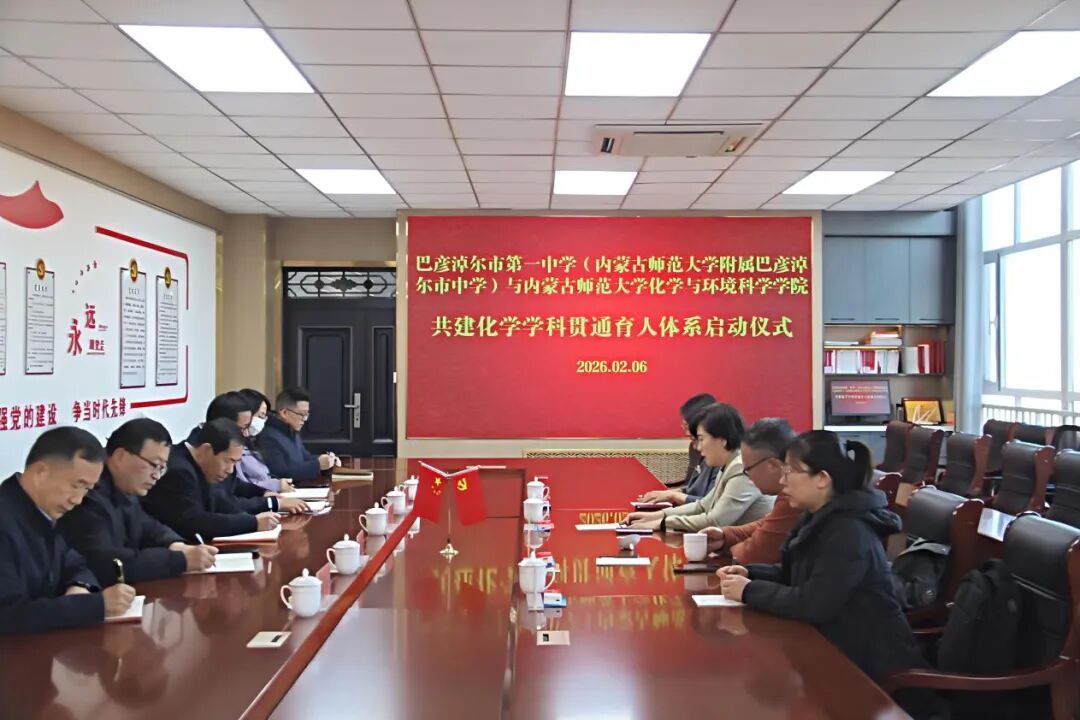 2月6日上午,我院与巴彦淖尔市第一中学(太阳成集团tyc9728附属巴彦淖尔市中学)共建化学学科贯通育人体系启动仪式在巴彦淖尔市隆重举行。本次合作立足高校与中学协同育人核心目标,聚焦化学学科优质教育资源整合共享,深化双方既有合作基础,为学生成长成才搭建全新发展平台、开辟多元进阶路径。两校相关负责同志参加启动仪式。