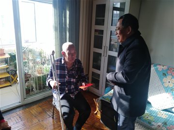 2019年1月31日上午,9728太阳集团党委书记刘子忠、院长贾美林、副院长包永胜和工会主席王奖组成春节慰问小组,为我院部分患病及生活较困难的退休教职工送上新春的祝福和关怀,弘扬了中华民族尊老敬老的传统美德
