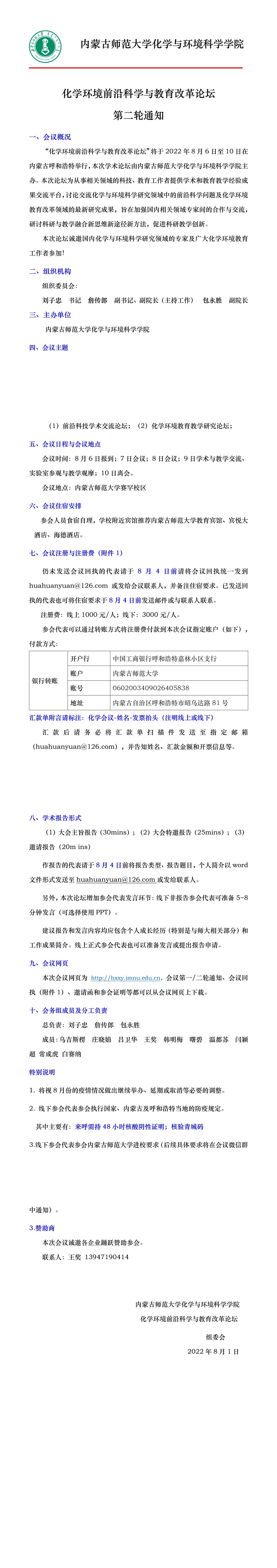 9728太阳集团化学环境前沿科学与教育改革论坛第二轮通知
