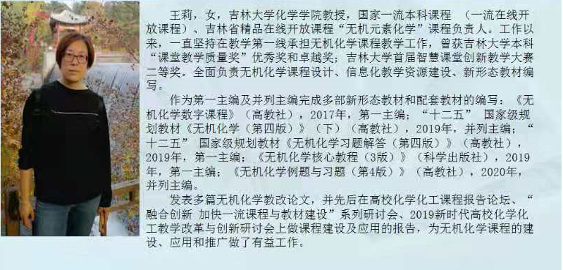 2021年4月22日下午,吉林大学化学学院王莉教授应9728太阳集团邀请,在线上(腾讯视频会议)做了关于“无机化学在线课程建设与线上线下混合式教学实践”的专题讲座。我院院长贾美林教授主持会议,学院师生在化学楼102会议室集体参加了此次学术报告。
