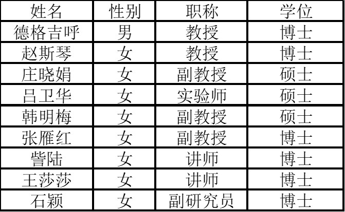 无机化学教研室现有教师9人,其中教授2人,副教授3人,副研究员1人,讲师2人;博士6人,硕士3人;博士生导师2人,硕士生导师4人。