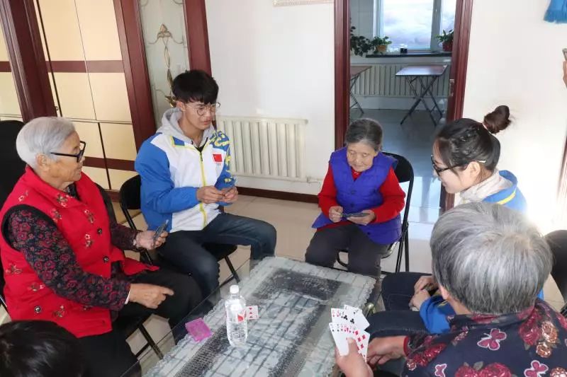 临近年关,我院老师和同学们希望在力所能及的范围内给老人们带来更多的快乐和温暖。大家怀着忐忑的心情走进了老人们所在的房间,老人们看到我们这些陌生的面孔也有些许的拘谨。在工作人员的介绍下,志愿者们与老人们渐渐熟悉了起来。老吾老以及人之老,我们亲近的与老人们话家常,逗老人们开心,并且细心地帮助老人们打扫房间卫生、晾晒被褥,推着坐轮椅的老人在公寓附近散心……不知不觉中,天色渐渐暗下来,本次的实践活动接近了尾声,志愿者们向老人们依依不舍的招手,天下没有不散的筵席,相信怀有感恩之心的志愿者们一定还会再次来看望老人们。
