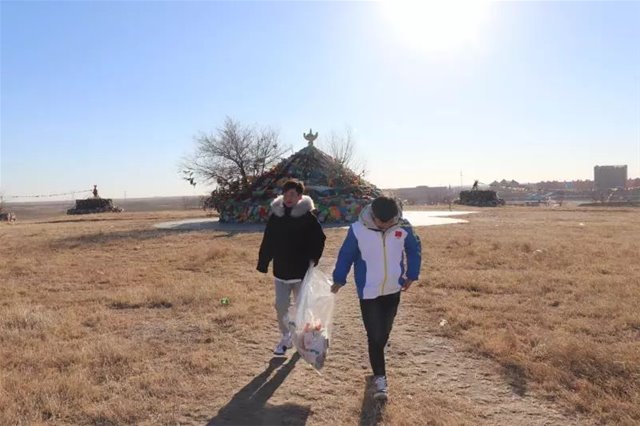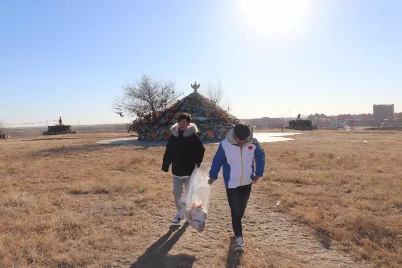 接下来的几天,我院继续进行假期实践活动,在辅导员何朝鲁门老师的带领下,志愿者们前往科右中期敖包。首先志愿者们先按照习俗绕敖包三圈,然后开始清扫周围的垃圾。虽然天气寒冷,但志愿者们丝毫没有松懈,认真做着自己的工作。