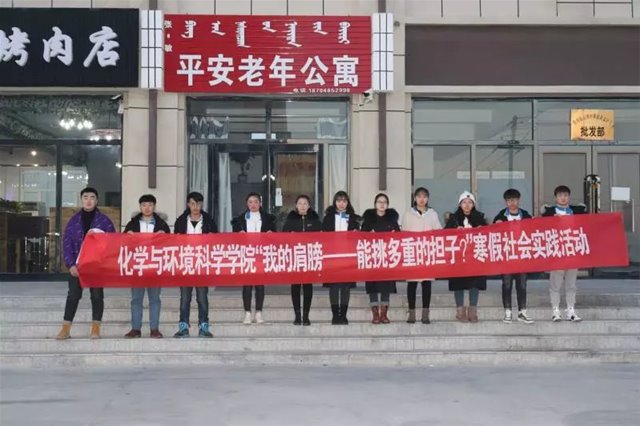 2019121号,我院开启了假期实践活动的第一篇章,在辅导员何朝鲁门老师的带领下,那木拉、卫东、国庆、包纳荷芽、白莹莹、文平、田灵芝、何美玲、代美丽、晓梅、席俊杰等同学来到了内蒙古兴安盟科尔沁右翼中旗巴彦呼舒镇平安老人公寓看望老人。