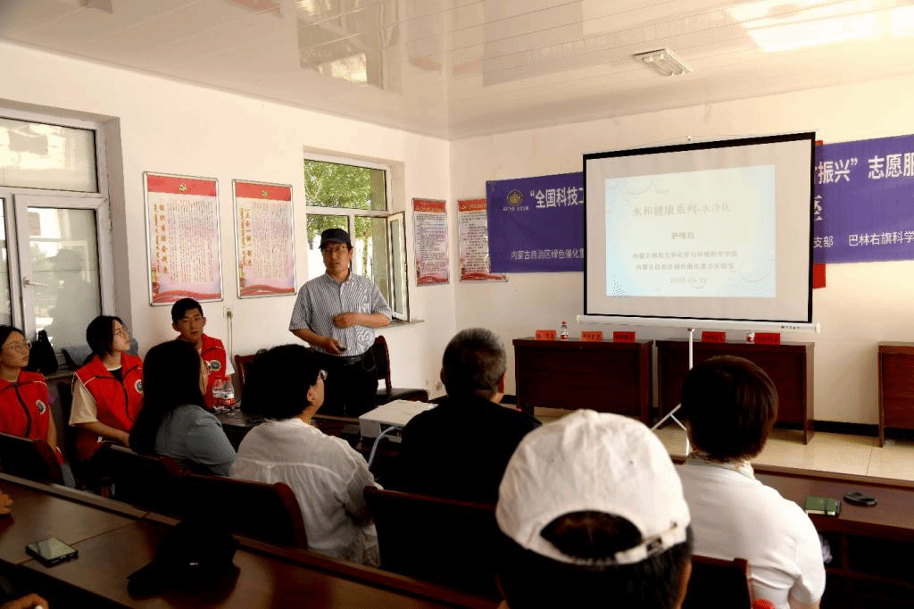 健康饮水科普讲座—“全国科技工作者日”宣传既巴林右旗科普助力“乡村振兴”志愿者服务活动2022-05-29为深入贯彻落实习近平总书记关于教育的重要论述以及科普和科学素质建设的重要论述精神,为进一步提升农牧民群众生活质量,倡导科学健康生活 ,太阳成集团tyc9728化学与环境科学院,内蒙古自治区绿色催化重点实验室,萨嘎拉副教授带领学生远赴赤峰巴林右旗归勒斯台嘎查,参加主题为“健康饮水科普讲座”的“全国科技工作者日”宣传既巴林右旗科普助力“乡村振兴”志愿者服务活动。巴林右旗科协党组书记、主席娜布其、大板镇党委书记...