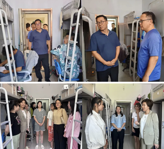 我院领导班子深入学生宿舍走访慰问2024-08-26新学期伊始,为落实新学期学生安全返校工作,掌握学生思想动态,进一步做好学生的教育、管理与服务工作,8月26日,学院党委书记林海河,党委副书记、副院长范磊,副院长包永胜、焦燕以及全体辅导员深入学生宿舍,为学生送去关心与问候。走访期间,老师们与返校同学亲切交谈,询问了解同学们的返校行程、假期学期生活等,嘱咐同学们及时调整生活状态,加强锻炼、规律作息,注意宿舍卫生、用电安全问题,养成良好的生活习惯,勉励...